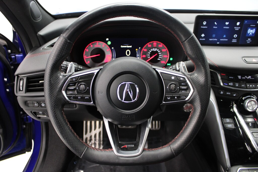 Leather Seats, Navigation, Sunroof, Heated Driver Seat, Cooled Driver Seat. Rear Spoiler, MP3 Player, Keyless Entry, Remote Trunk Release, Steering Wheel Controls. Acura w/A-Spec Package with Apex Blue Pearl exterior and Red interior features a 4 Cylinder Engine with 272 HP at 6500 RPM*. This TLX is priced $1,900 below J.D. Power Retail. Was $26,898.