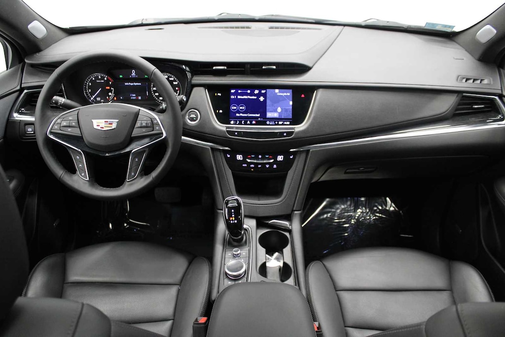 with connected navigation providing real-time traffic, 8" diagonal color information display, 4 USBs, 2 auxiliary power outlets, personalized profiles for each driver's settings, Natural Voice Recognition, Phone Integration for Wireless Apple CarPlay®/Wireless Android Auto® capability for compatible phone, Connected Apps and Teen Driver, includes (CAV) All-Weather integrated cargo liner, LPO and (VAV) All-Weather floor mats, LPO, (Vehicles built prior to February 14, 2022, include heated steering wheel. Certain vehicles built on or after February 14, 2022, will be forced to include (00G) Not Equipped with Heated Steering Wheel, which removes heated steering wheel. (JSE) Platinum Package retains automatic heated steering wheel as standard content. See dealer for details or the window label for the features on a specific vehicle.), with Automatic Stop/Start (235 hp [175 kW] @ 5000 rpm, 258 lb-ft of torque [350 N-m] @ 1500-4000 rpm) (STD), (STD), includes Cadillac speaker grille pattern.