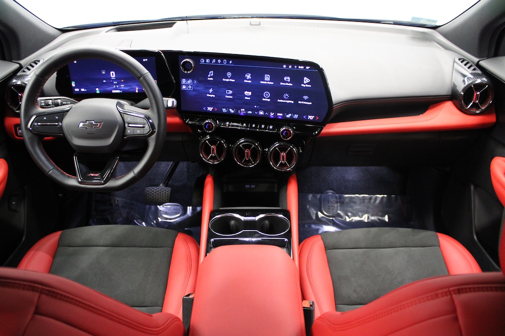 All Wheel Drive, Power Liftgate, Rear Air, Heated Driver Seat, Cooled Driver Seat. MP3 Player, Privacy Glass, Keyless Entry, Remote Trunk Release, Child Safety Locks. Chevrolet eAWD RS with Riptide Blue Metallic exterior and Black/Adrenaline Red interior features a Electric Motor. CARFAX 1-Owner AutoCheck One Owner This Blazer EV is priced $7,300 below J.D. Power Retail. Was $27,898.